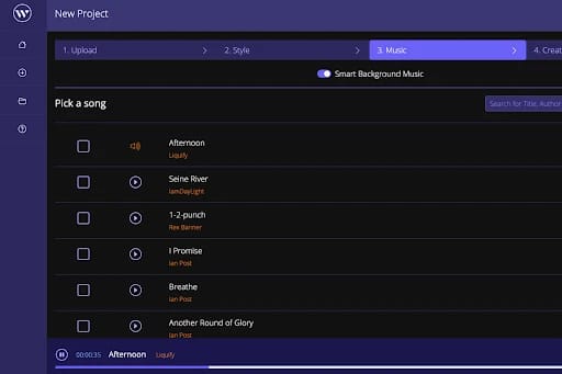 With Wisecut you can easily search for music by genre, mood or instrumentation and add it and sync to the video in one click.