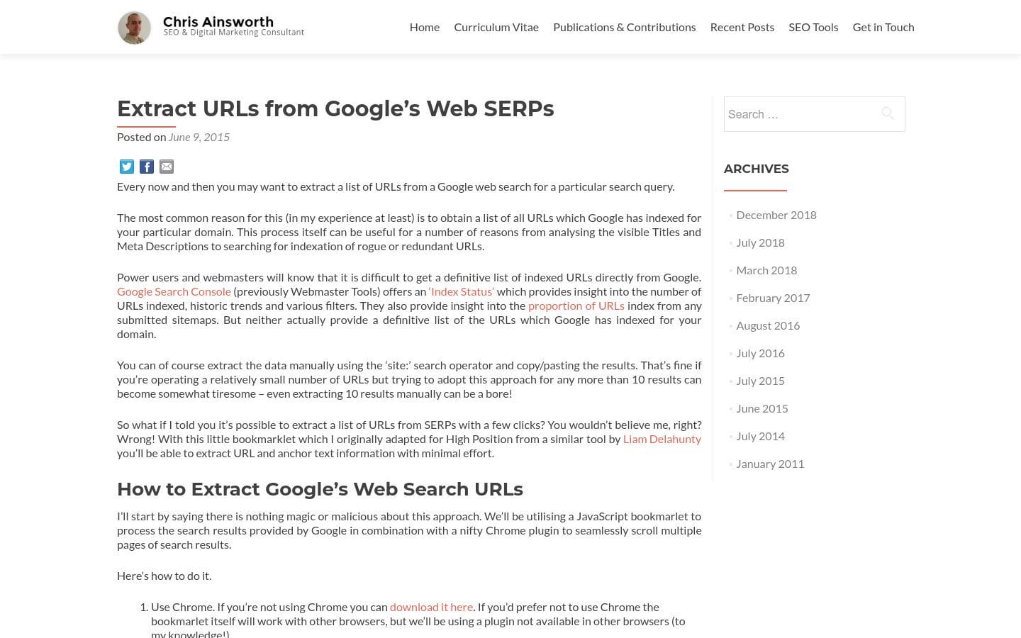 Extract URLs from Google's Web SERPs