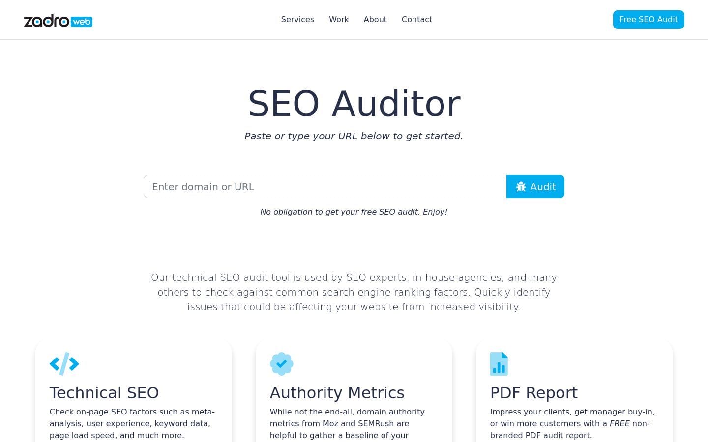 Zadroweb SEO Auditor is a free SEO audit tool that allows users to scan their website i...
