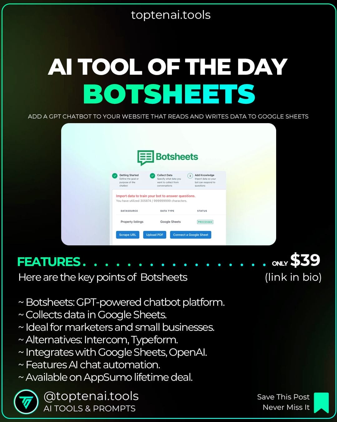 Botsheets is a groundbreaking GPT chatbot integration for websites, leveraging Google Sheets for data management. It's a