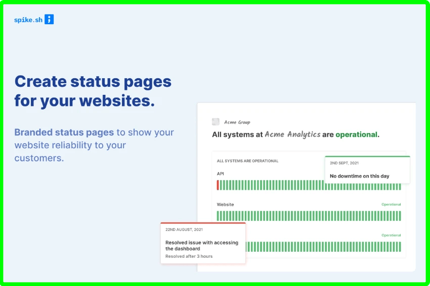 Spike.sh is a comprehensive solution for website uptime monitoring, status pages, and incident management.
