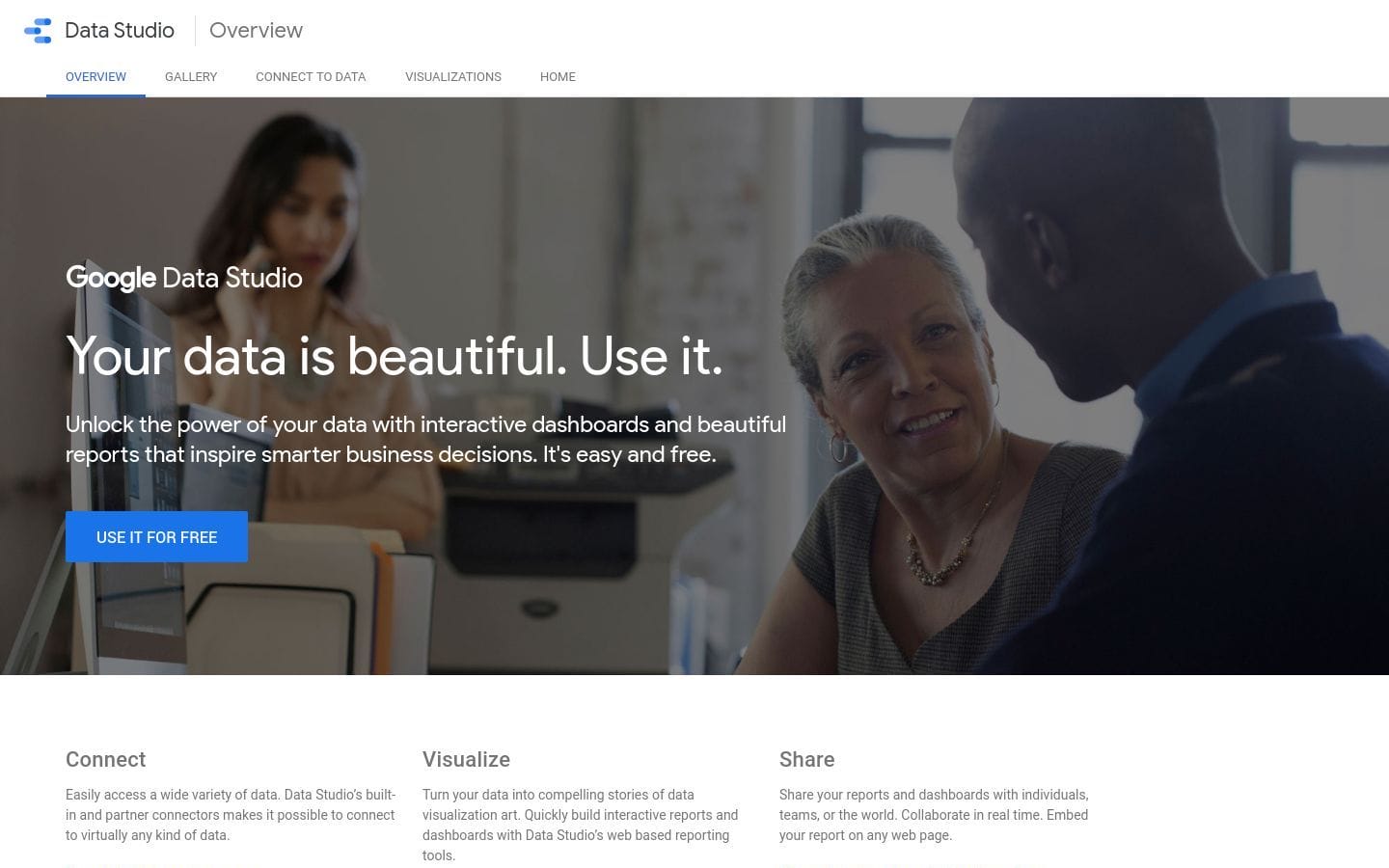 Google Data Studio is a free reporting tool that lets you create beautiful, customizable reports with data from multiple data sources. You can share your reports with colleagues, or embed them on your website or blog.