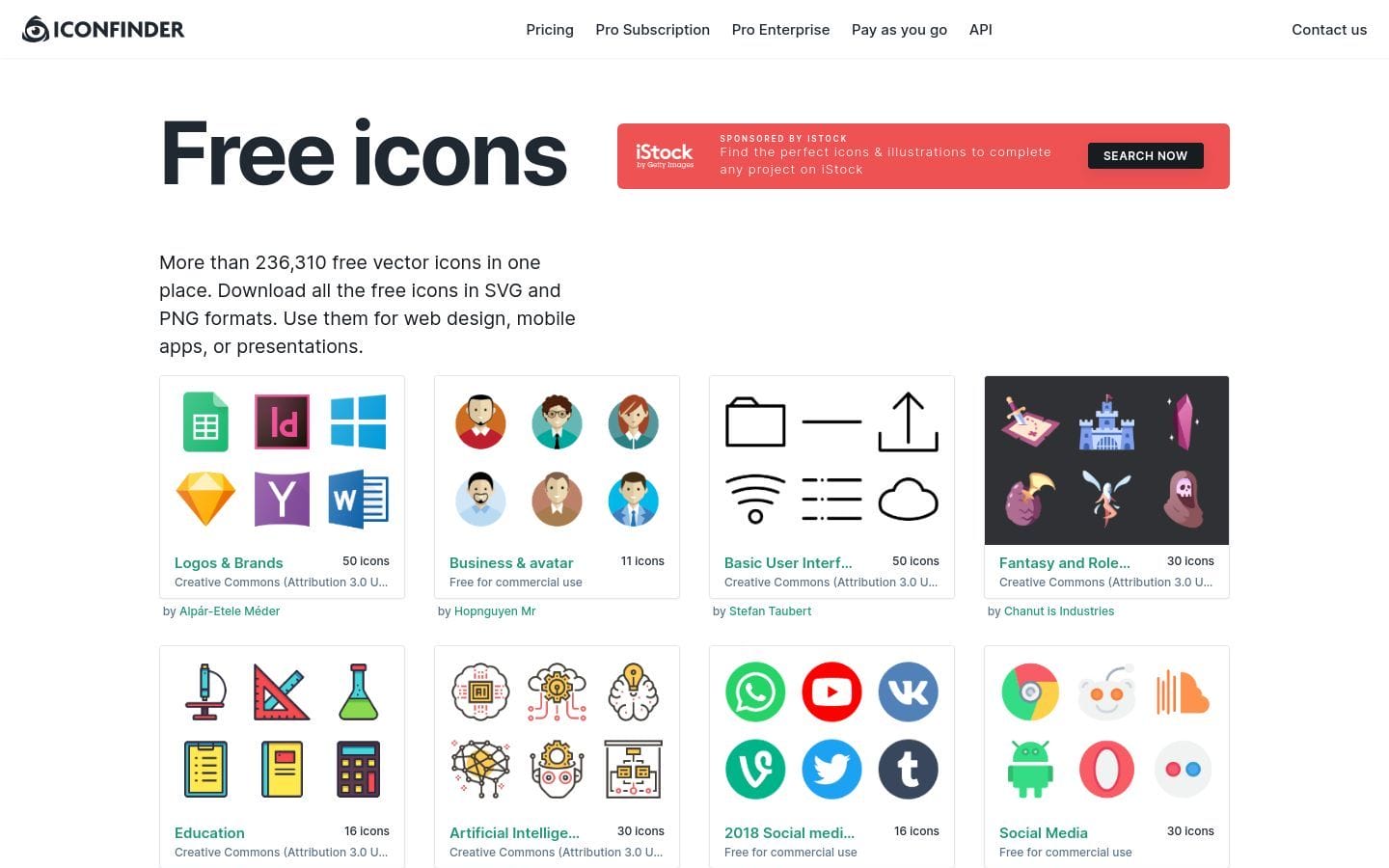 The icons are searchable by keyword, color, and format.